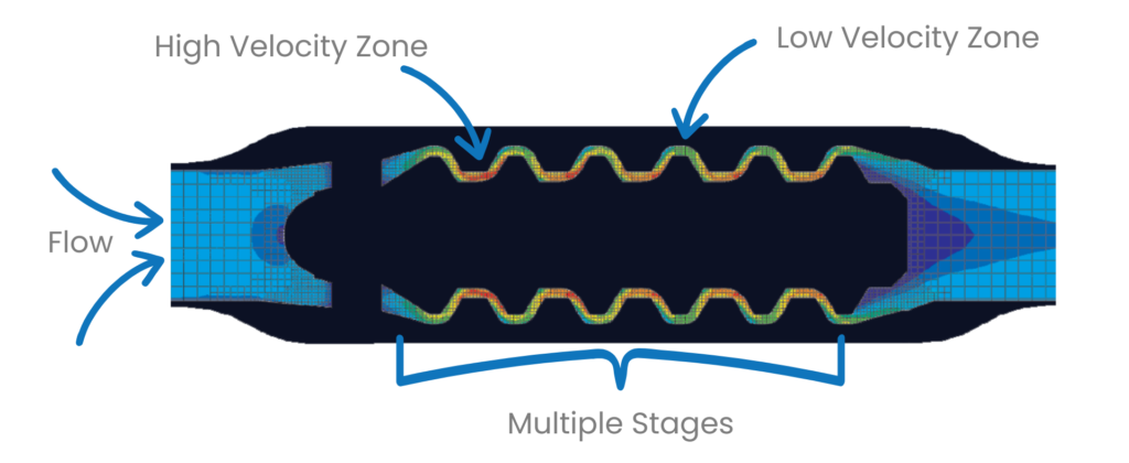 Energy is supplied to the Filblast through pressure head delivered by a pump. Gas (air or oxygen) is introduced at the front of the Filblast and is intimately mixed with the liquid/ slurry phase as it passes through the stages of the Filblast chamber.